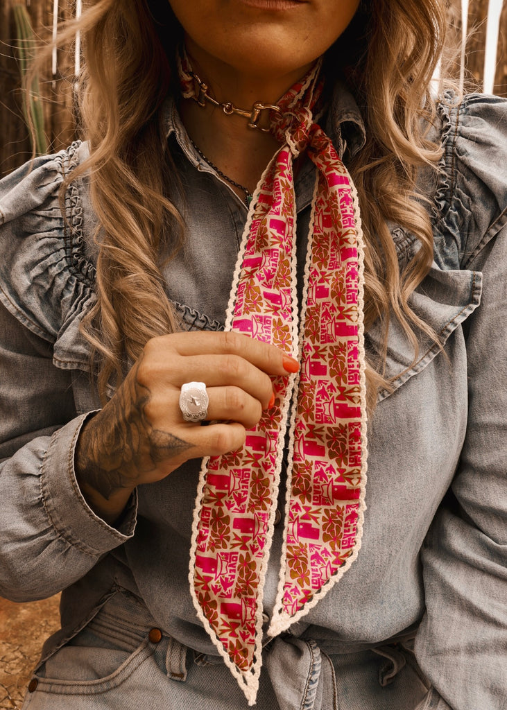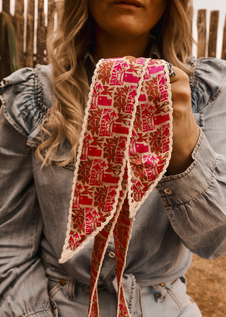 Wear it tied around your neck, hat, wrist, or handbag – wherever your cowgirl heart desires.