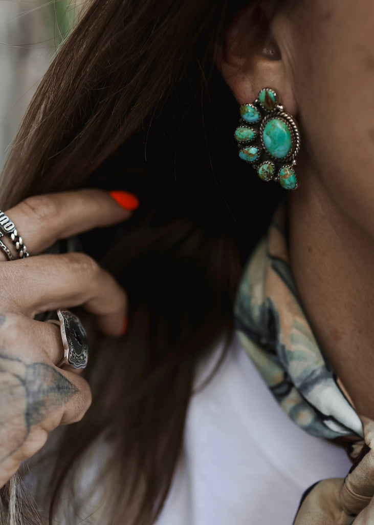 THE APACHE TRAIL CLUSTER EARRINGS - KINGMAN TURQUOISE