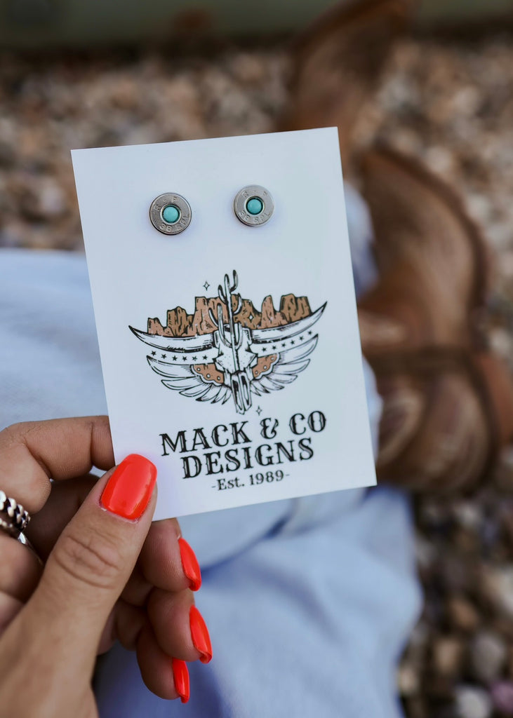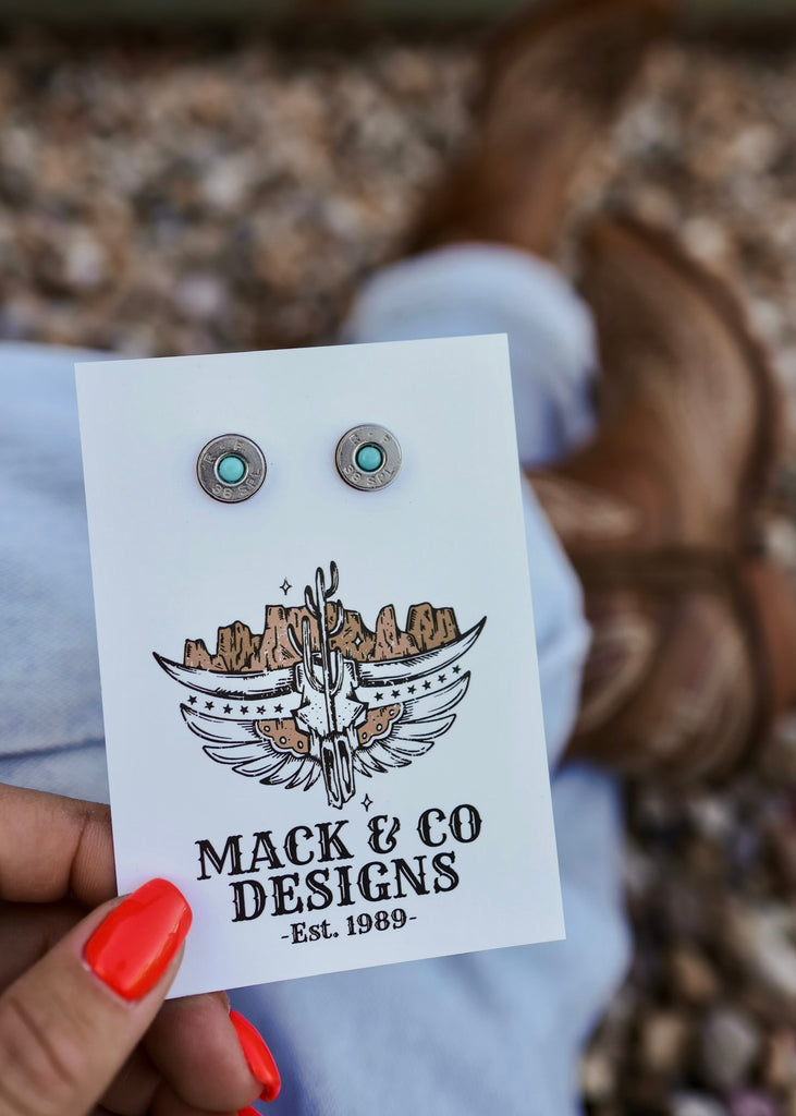 Simple, timeless, and full of Western soul. Crafted from once-fired bullet shells and set with genuine Kingman turquoise, these studs bring a touch of everyday cowgirl class. Designed to be worn season after season, they’re a signature Mack & Co staple — rugged roots, refined finish.