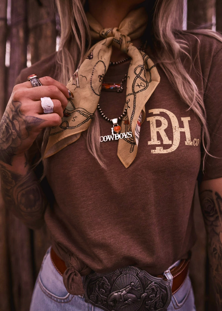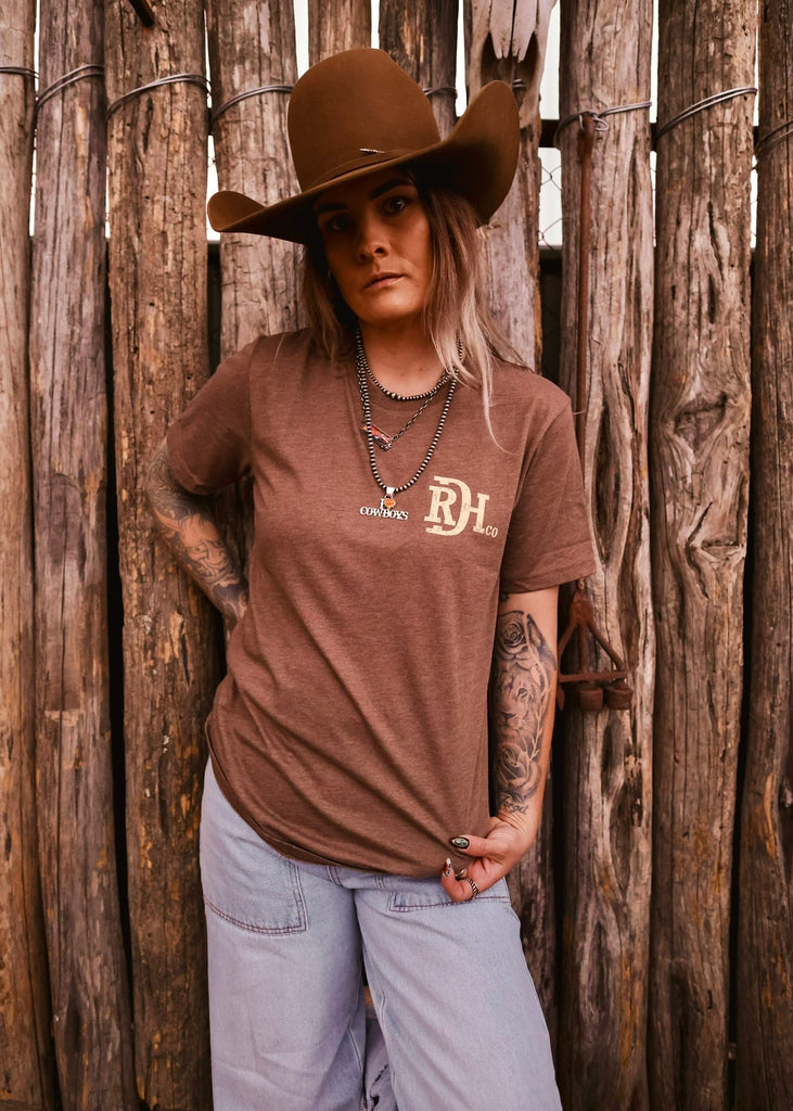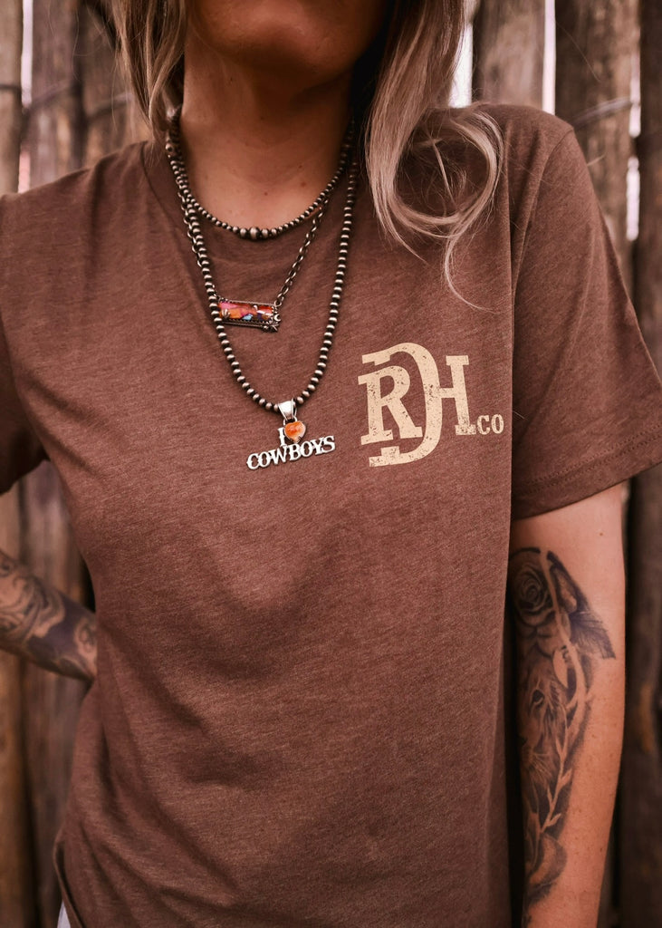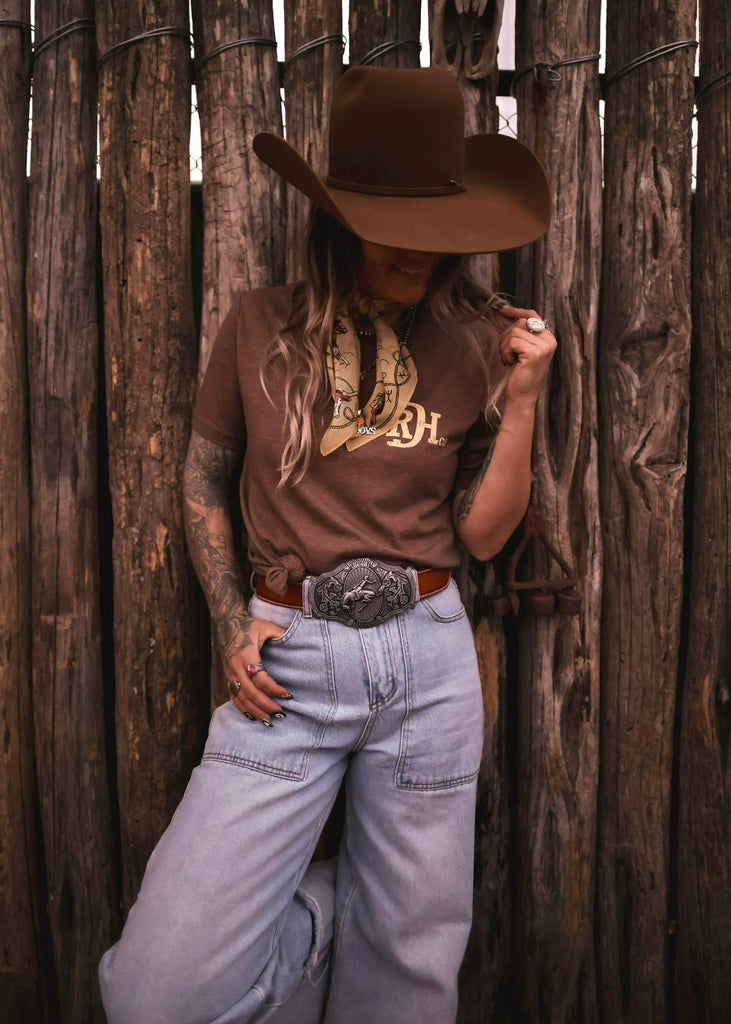 Western roots run deep in this Red Dirt Hat Co. classic. The Tooled Leather Tee features a vintage-style back graphic inspired by hand-tooled leatherwork, framed with bold turquoise detailing and the signature RDH brand.