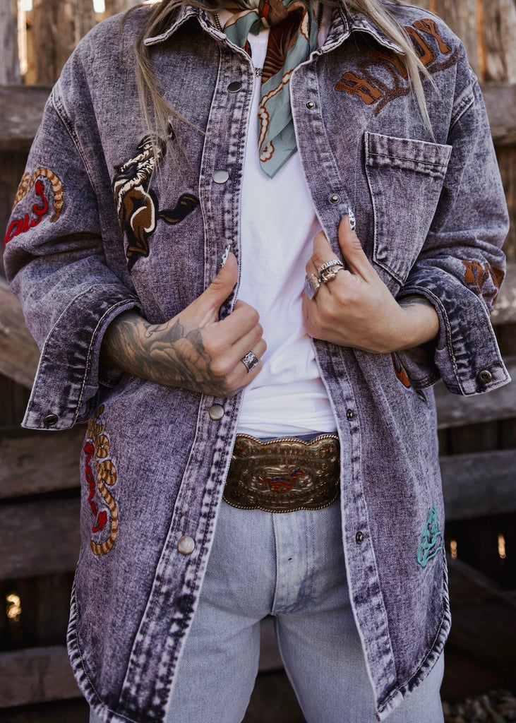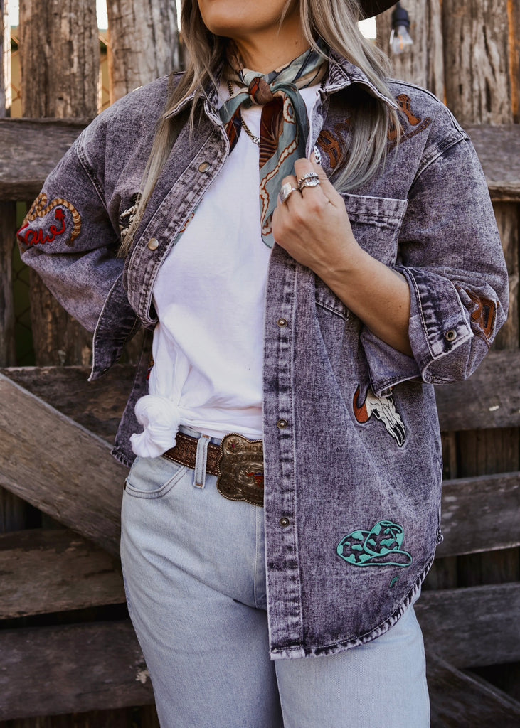 A true Western statement piece, the Cadillac Ranch Shacket brings vintage character and bold detailing together in one effortless layer. Crafted in a washed denim with a vintage-inspired acid wash finish, this shacket has that perfectly worn-in look we all love.