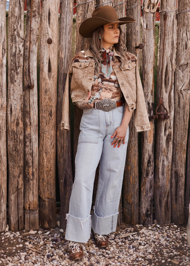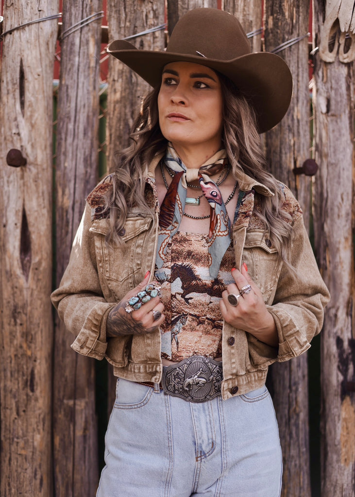Crafted in warm, earthy tones and cut in a relaxed, easy-to-style fit, it blends everyday comfort with true Western character. Dress it up with a scarf and jewellery or keep it casual with denim – either way, it’s a statement piece made for the cowgirl who carries the open range wherever she goes.
