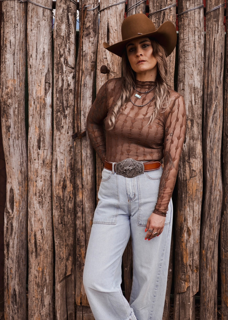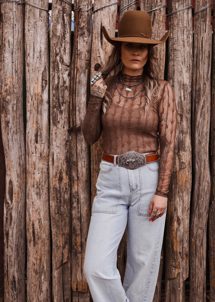 THE WESTERN HERITAGE LACE TOP IN CHOCOLATE