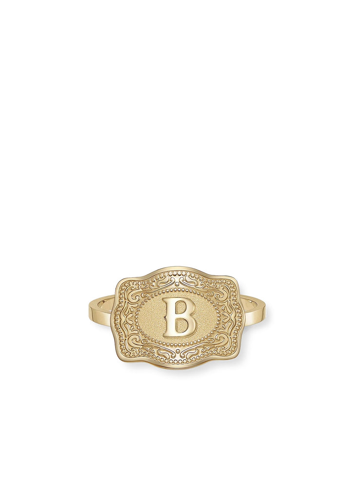 THE INITIAL MINI BELT BUCKLE RING IN GOLD BY SPURWEST