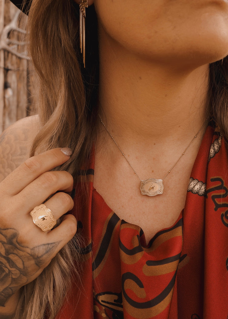 Bronc Mini Belt Buckle Necklace - Gold
