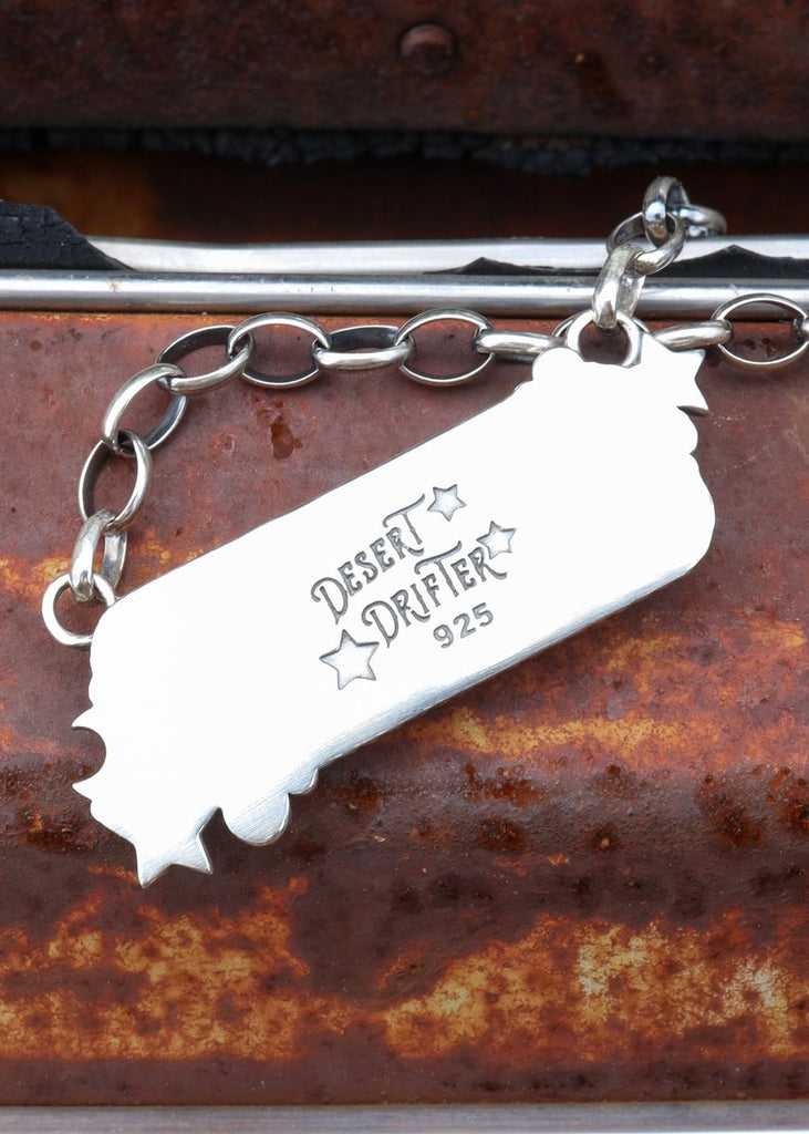 Crafted from sterling silver, this bold bar necklace captures the rugged beauty of the Southwest. The centerpiece features striking Orange Dahlia stone, its fiery blend of orange, pink, and gold hues contrasted with pops of turquoise for a desert-sunset glow. Framed with twist rope border, starshot detailing and a lone saguaro cactus, it carries the spirit of wide-open skies and endless horizons.