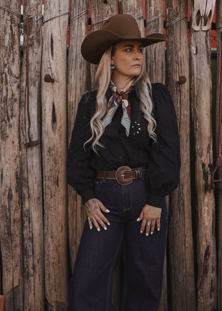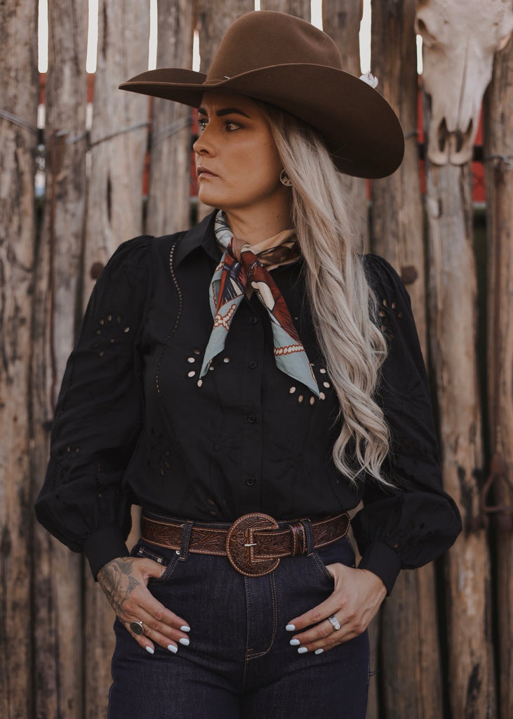It’s the kind of piece that works across seasons - easy to style with denim, skirts, or statement trousers - adding a romantic Western edge to any look.