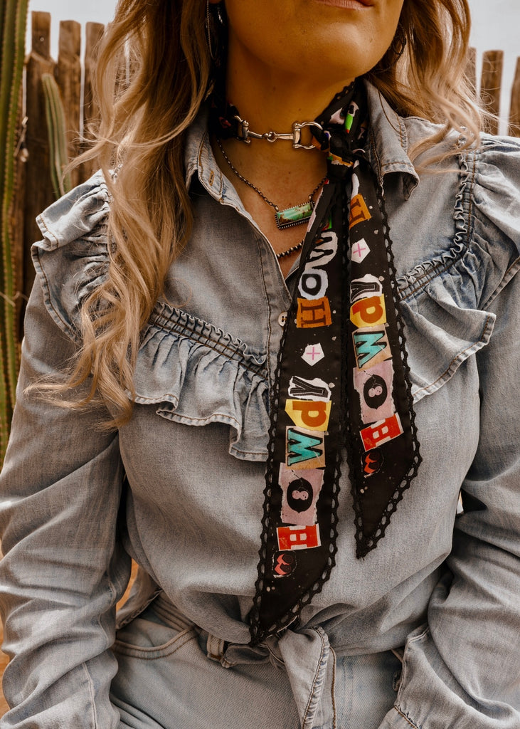 Wear it tied around your neck, hat, wrist, or handbag – wherever your cowgirl heart desires.