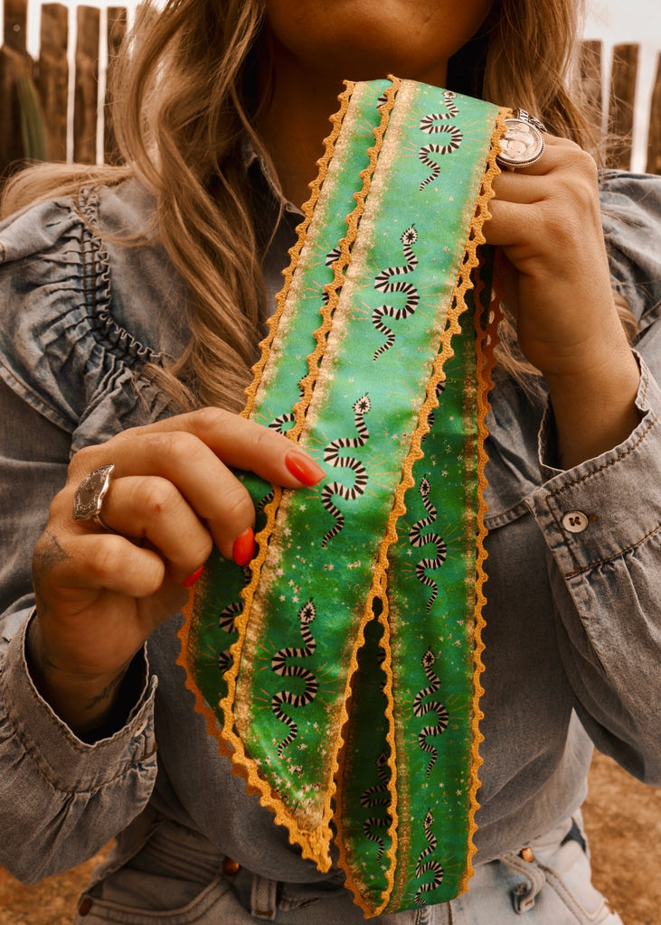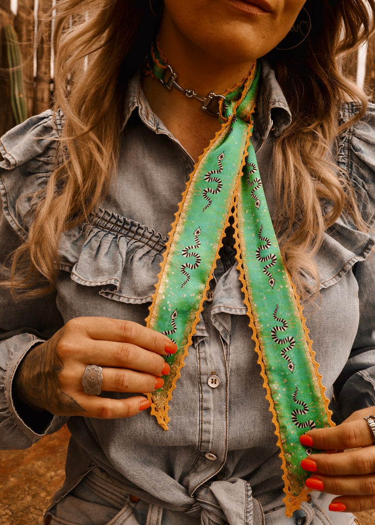 Wear it tied around your neck, hat, wrist, or handbag – wherever your cowgirl heart desires.